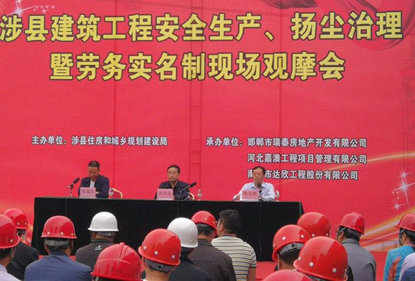 住建局局長張玉斌對我公司在御湖天城建筑安全施工、揚塵整治暨勞務實名制的做法,給予高度肯定。 他表示,我們公司在安全管理、揚塵治理及勞務實名制的做法為涉縣其他各單位的現(xiàn)場安全管理、揚塵治理及有效地維護農民工權益指明了方向和途徑。