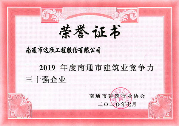 公司獲得南通市建筑業(yè)競(jìng)爭(zhēng)力三十強(qiáng)