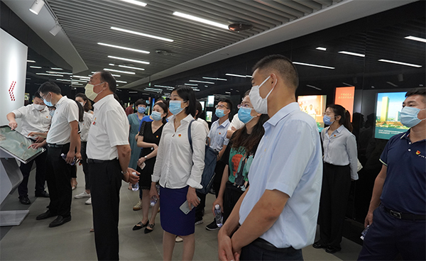 領(lǐng)導(dǎo)們一行來(lái)到企業(yè)展示中心,觀看了集團(tuán)黨建專題片---紅旗鐵軍,詳細(xì)聆聽(tīng)了集團(tuán)黨委開(kāi)展的四項(xiàng)融合、四微黨建、三項(xiàng)目標(biāo)的“四四三”黨建工作法等內(nèi)容,了解了具有達(dá)欣特色的“工地黨旗美如畫(huà)”黨建工作新舉措、新理念。隨后,領(lǐng)導(dǎo)們還參觀了馬和軍勞模創(chuàng)新工作室黨支部,聽(tīng)取了集團(tuán)建筑工地上流動(dòng)黨員立足本職崗位,發(fā)揮帶頭模范作用,提升項(xiàng)目質(zhì)量,助推集團(tuán)高質(zhì)量發(fā)展的情況介紹。