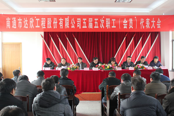 公司五屆五次職工會員代表大會于1月31日召開。主席臺就座的有海安縣總工會常委、組織部長陸威生、海安建管局副局長、建筑工會主席徐培鴻、公司董事長馬和軍、公司黨委書記劉厚純等,公司90名職工代表參加了會議。