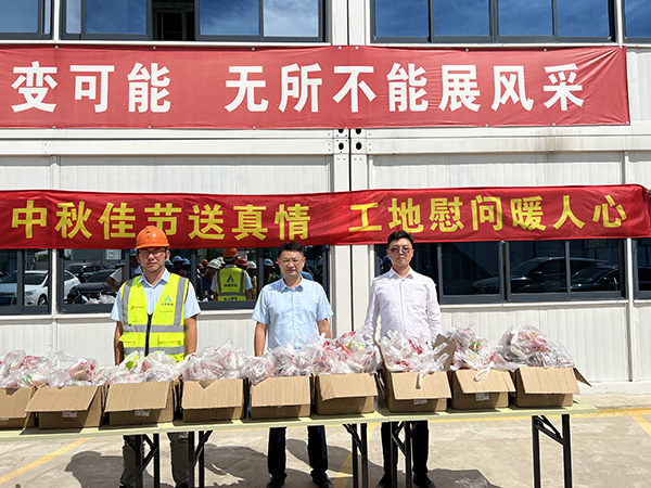 在項目現(xiàn)場,倪志榮將中秋月餅、水果等慰問品一一發(fā)到大家的手中,與大家進行了親切的交談,了解他們的生活情況、身體狀況,詢問他們工作中遇到的困難等。他表示,公司始終心系一線職工,想職工所想、急職工所急,切實為廣大職工為提供安全、放心、健康的施工環(huán)境,希望大家共同為工程公司的健康發(fā)展而努力。