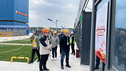 繆永建書記一行仔細(xì)聽(tīng)取了本工程進(jìn)度情況,深入了解施工現(xiàn)場(chǎng),檢查現(xiàn)場(chǎng)管理,詢問(wèn)施工中遇到的困難,并給予解決意見(jiàn)和建議。同時(shí),他對(duì)施工現(xiàn)場(chǎng)管理表示肯定,他指出達(dá)欣作為南通建筑行業(yè)的明星單位,要爭(zhēng)取在今年上半年南通市區(qū)安全生產(chǎn)觀摩工地展現(xiàn)出項(xiàng)目的亮點(diǎn)和品質(zhì)。