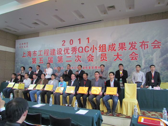4月17日上海市工程建設(shè)質(zhì)量管理協(xié)會(huì)召開2011年建設(shè)工程優(yōu)秀QC小組活動(dòng)成果發(fā)布會(huì)暨第五屆第二次會(huì)員大會(huì)。第一工程公司選送的 “攻克3m厚大體積砼底板裂縫”、“提高施工現(xiàn)場安全達(dá)標(biāo)優(yōu)良率”、“推行‘四節(jié)一環(huán)保’有效降低工程成本”、“提高建筑幕墻工程的施工質(zhì)量”、“有效控制填充墻內(nèi)混凝土構(gòu)造柱裂縫”、“有效控制斜屋面混凝土施工質(zhì)量”、“提高YTONG砂加氣砼砌塊砌筑合格率”、“有效提高模板工程施工質(zhì)量”、“降低明珠城三期工程鋼筋損耗”等九項(xiàng)QC成果均參加本次活動(dòng)的發(fā)布與交流。這次江蘇省在滬企業(yè)參加QC成果發(fā)布、交流共83篇,我公司就占據(jù)其中的14%,得到了駐滬辦領(lǐng)導(dǎo)的充分肯定。工程公司也被上海市工程建設(shè)質(zhì)量管理協(xié)會(huì)評為2011年上海市建設(shè)質(zhì)量管理小組活動(dòng)優(yōu)秀企業(yè)。