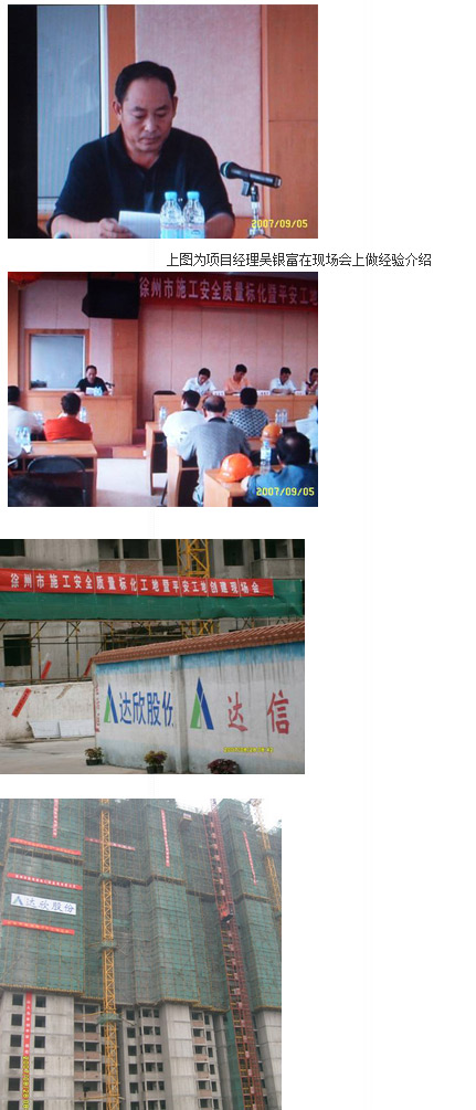 大會上吳經理的發(fā)言得到了大家一次又一次的掌聲,建設局安監(jiān)處王處長最后對這次的現(xiàn)場會作了很高的評價。通過這一次的活動,極大的提高了“達欣股份”在徐州建筑市場的知名度,為“達欣股份”進軍強手之林奠定了基石,提升了我們的品牌形象。