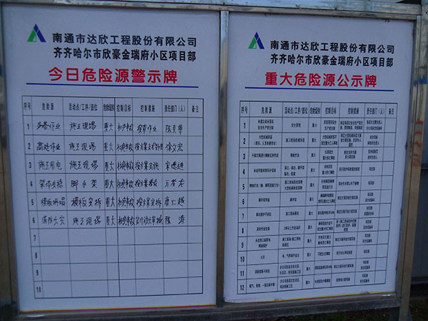 加強(qiáng)宣傳,項(xiàng)目部堅(jiān)持每日對(duì)職工進(jìn)行班組教育和日常班前教育,讓職工每日班前都能明確當(dāng)日的工作任務(wù)、操作規(guī)程和工作環(huán)境,提高個(gè)人的安全防范意識(shí),確保安全生產(chǎn);在每棟樓懸掛“安全生產(chǎn)月”活動(dòng)的宣傳標(biāo)語(yǔ)。加強(qiáng)警示,在工地大門口設(shè)置了重大危險(xiǎn)源公示牌,在每棟樓的入口處公示當(dāng)日本樓棟號(hào)的危險(xiǎn)源,時(shí)刻提醒職工注意作業(yè)期間身邊的危險(xiǎn)源。加強(qiáng)檢查,認(rèn)真組織對(duì)臨邊、洞口防護(hù)、漏電保護(hù)裝置進(jìn)行重點(diǎn)檢查,及時(shí)消除安全隱患。同時(shí)對(duì)各項(xiàng)目部40歲以上的員工進(jìn)行一次拉網(wǎng)式血壓檢查。對(duì)于高血壓的特殊工種,要求其休息調(diào)養(yǎng),待血壓正常后方可繼續(xù)上崗。
