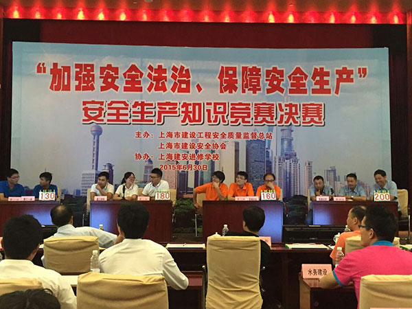 7月3日下午,由上海市建設(shè)工程安全質(zhì)量監(jiān)督總站、上海市建設(shè)安全協(xié)會舉辦的“加強(qiáng)安全法治、保障安全生產(chǎn)”安全生產(chǎn)知識競賽決賽,在上海建工四建集團(tuán)如期舉行。由朱興龍、郭勇、邵建華組成的達(dá)欣代表隊歷經(jīng)初賽,在數(shù)十家參賽單位中以優(yōu)異的成績?nèi)雵鷽Q賽。經(jīng)過激烈爭奪,第一工程公司代表隊最終獲得了決賽團(tuán)體三等獎。
